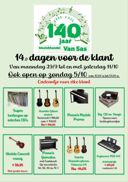 Zoek je een muziekwinkel in Turnhout waar je terecht kan voor alle muzikale benodigdheden? Muziekhandel Thom Van Sas is dé allround-muziekhandel waar passie voor muziek en kennis elkaar ontmoeten. Bij ons stap je binnen in een wereld waar elke noot telt en elke muziekliefhebber zijn hart kan ophalen. Als allround-muziekhandel in Turnhout bieden wij een uitgebreid assortiment aan instrumenten, van gitaren tot saxofoons, en helpen we je met persoonlijke service op weg naar de perfecte muzikale beleving.